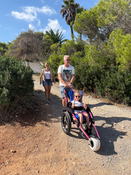 Die sportrolstoel hebben we uiteindelijk het meest gebruikt — en niet alleen omdat hij lekker rolt. Ibiza zit namelijk vol onverharde weggetjes, spontane zandpaden en heel veel baaitjes waar men kan zwemmen/ drijven. Met de sportrolstoel kunnen we makkelijk het water in én de Stabilo gebruiken: een kneedbaar zitkussen dat je kunt vormen naar praktisch elke situatie. Onmisbaar dus.
