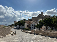 Dalt Vila, de UNESCO-werelderfgoed oude stad die boven Ibiza-Stad uittorent — magisch, romantisch en imposant. De klim naar deze oude stad en vesting is zeker de moeite waard, wellicht met een rolstoel niet tot hélémaal boven maar tot het uitkijkplateau in het midden. Schitterend uitzicht!