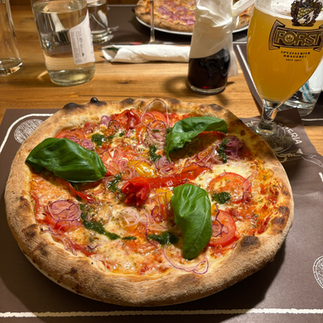 Pizza gegeten bij Taverna La Botte in Molveno, een superleuk uitziend restaurant, lekker eten, minpuntje : qua gevoel willen ze de tafel zo snel mogelijk weer vrij hebben.